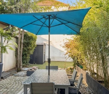 Deux grandes chambres avec accès direct au jardin exposé plein sud offrent un cadre paisible et agréable. Une salle d'eau moderne et des toilettes séparées complètent l'ensemble.