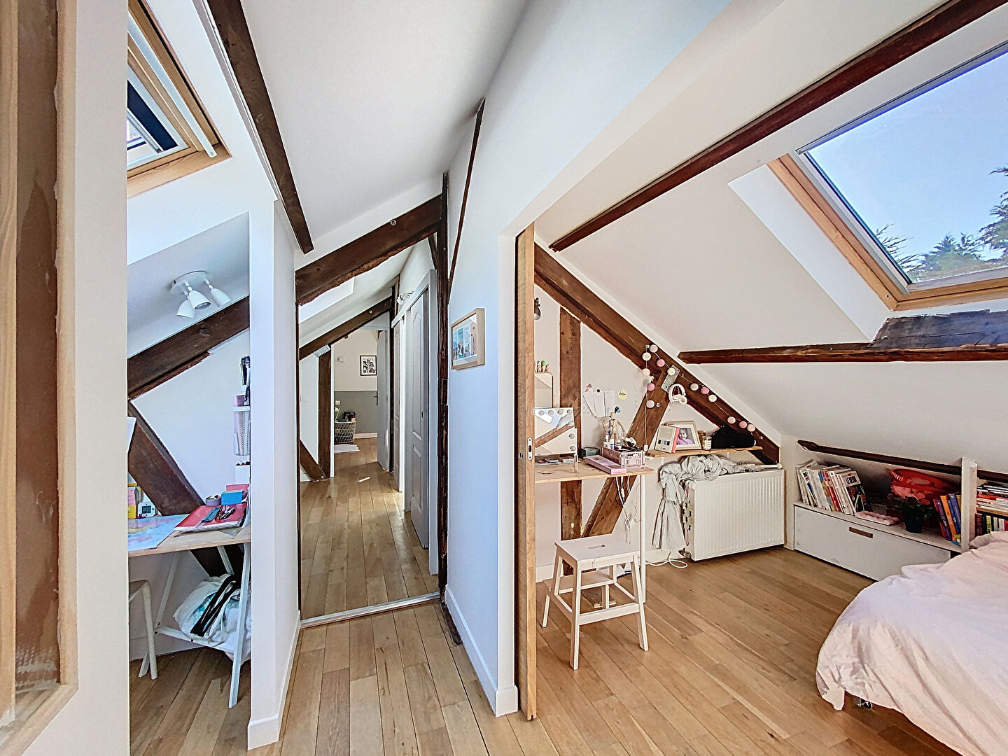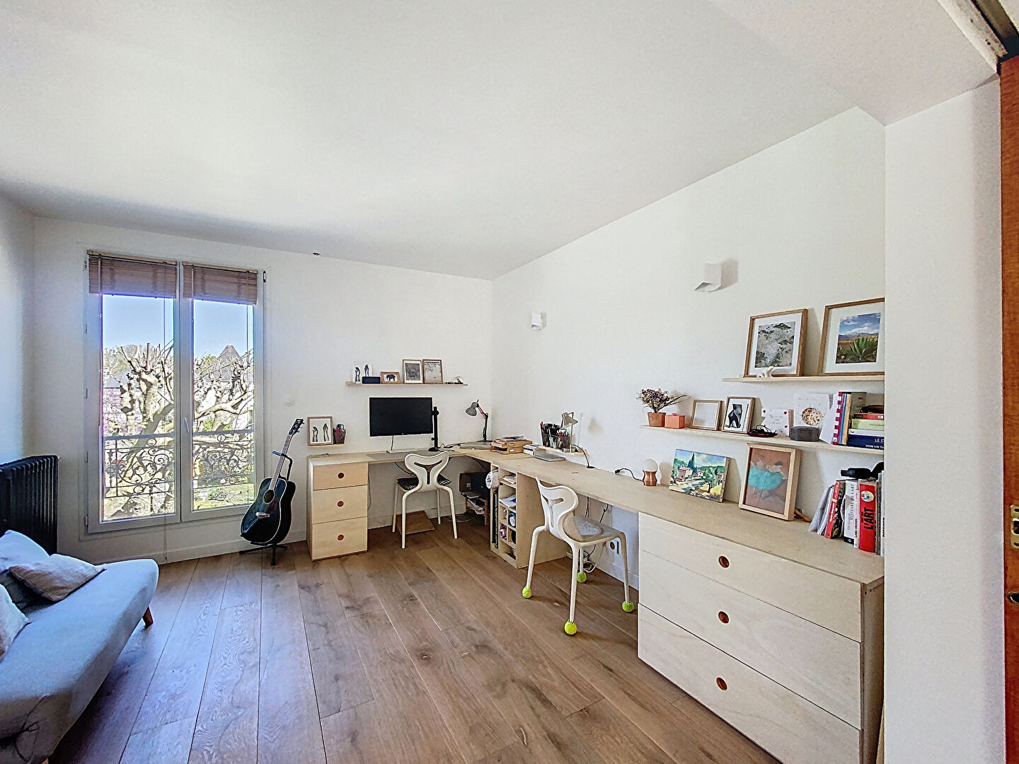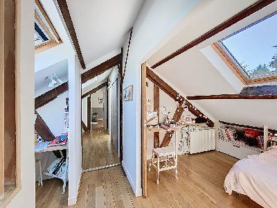 Descriptif: Au coeur du PARC à proximité de l'école et du collège des Tilleuls - 10 minutes du RER dans une petite copropriété de 1890 bien entretenue ayant gardé le charme de l'ancien - cours intérieure pavés - appartement traversant très lumineux en duplex de 92 m² en carrez et 131 m² au sol comprenant entrée - séjour et cuisine aménagée / dinatoire - suite parentale avec grande chambre - salle d'eau - grande pièce bureau ou nouvelle chambre - wc indépendant - à l'étage 2 grandes chambres - espace bureau - dégagement avec rangement- salle de bains - wc indépendant -